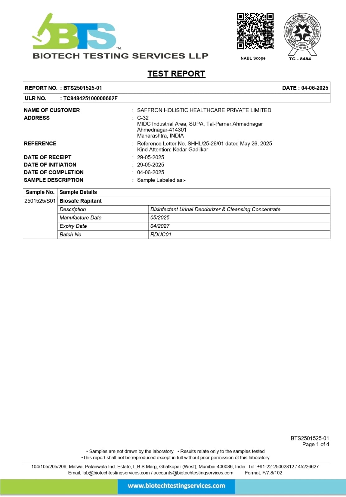 RAPPITANT – BIO safe Disinfectant Urinal deodorizer & cleansing Concentrate PINE OIL, Terpineol & Ethyl alcohol.